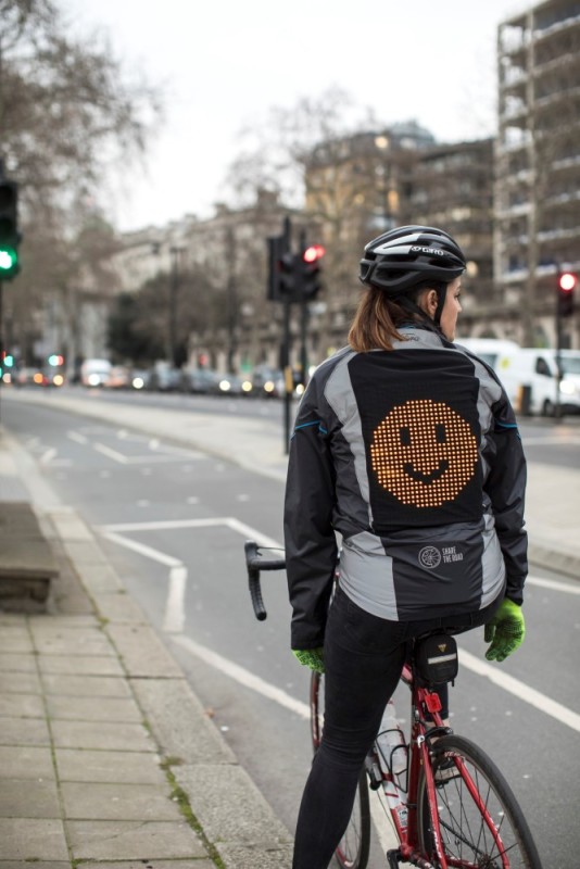 Éppen ezért a ‘Share The Road’ kampány keretében a Ford elkészíttette az Emoji Dzseki prototípusát. Ez az egyedi – egyelőre nem megvásárolható – ruhadarab azt mutatja be, miként oldható a feszültség az utakon, ha a kerékpárosok könnyebben és egyértelműbben tudják jelezni szándékaikat és érzéseiket az autósok felé.
