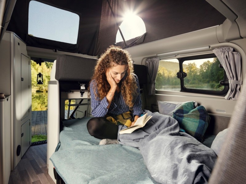 A Nugget lakóautóban akár négyen is alhatnak, hiszen a tetőtérből kihajtható dupla ágy mellett egy másik ugyanekkora fekvőhely is rendelkezésre áll a lakótérben. A hosszabb tengelytávú Nugget Plus modellben még több tárolóhely található, valamint egy beépített WC és kézmosó is