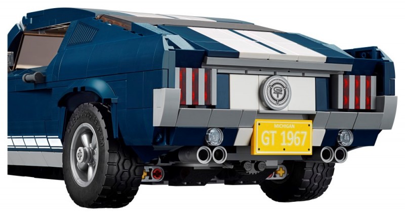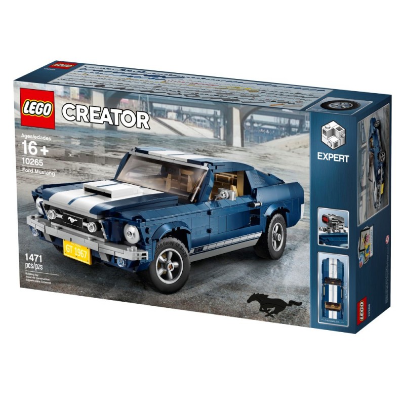 A Creator Expert terméksorozat legújabb tagja, a Ford és a LEGO® Csoport közös munkájával megalkotott Ford Mustang a legendás 1967-es Fastback modellt mintázza. Az 1470 darabból összerakható nosztalgia-izomautó építőkészlete működő kormánykereket, fehér versenysávokkal díszített sötétkék karosszériát, gépháztető-légbeömlőt, nyomtatott Mustang hűtőrács-emblémát, GT-emblémákat, ötküllős keréktárcsákat és széles gumiabroncsokat tartalmaz.
