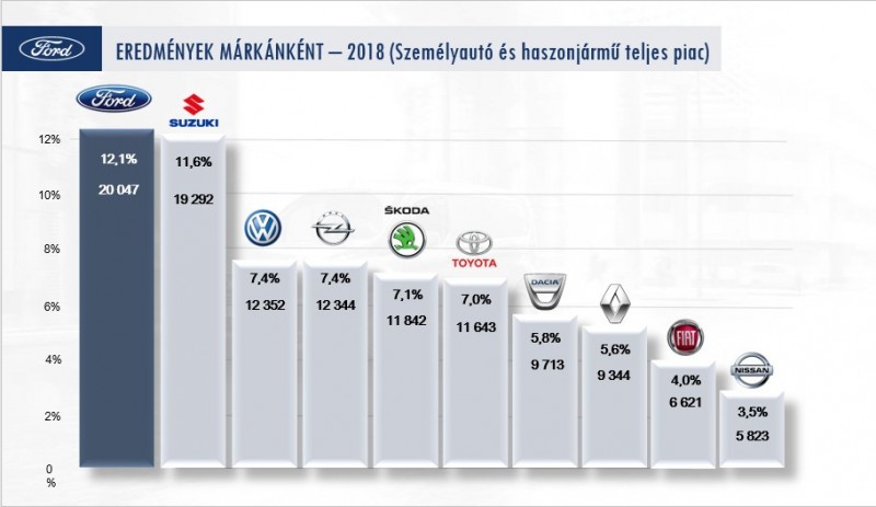 A Ford 2018-ban 23,6 százalékos eladásnövekedésével húzta fel a piac eredményeit.
