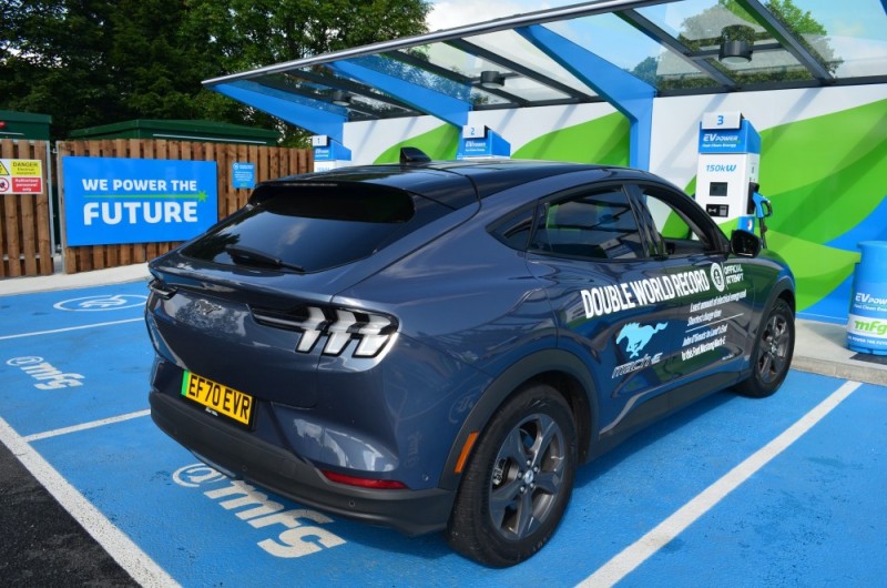 A Guinness World Records™ hivatalosan is hitelesítette, hogy Nagy-Britannia leghosszabb útvonalát az autó az eddigi legrövidebb, 43 perc 13 másodperces feltöltési megállóval teljesítette, mintegy 30 percet verve az eddigi csúcstartóra. A rekordot beállító hátsókerékhajtású, nagyobbik kapacitású akkumulátorral felszerelt Mustang Mach-E hatótávolsága 10 percnyi (150 kWh-s) gyorstöltéssel mintegy 117 kilométerrel hosszabbítható meg.