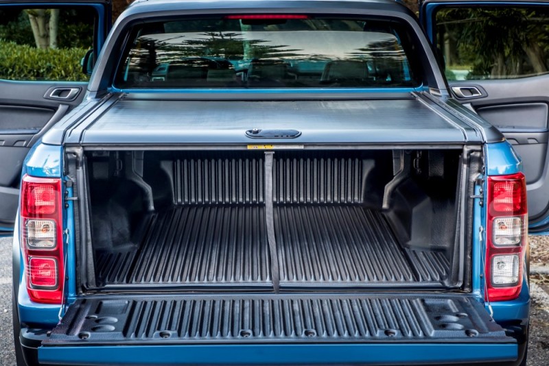 Mindemellett a Ranger Raptor vérbeli munkagép is maradt. A módosított hátsó lökhárítóba beépített vonóhorog 2500 kg vontatási kapacitást biztosít. A két első vonókampó 4635 kg-ig, a két hátsó pedig 3863 kg-ig terhelhető. Az 1560x1575 mm méretű platóbélés megóvja a hátsó traktus fényezését a szerszámok és a rakomány okozta karcolásoktól, de a hétvégi programok során is jó szolgálatot tesz, amikor az autó tulajdonosa koszos kerékpárokat vagy jetski-t szállít. A Platóhátfal Emelő Asszisztens rendszer új torziós rudazatot kapott, így a plató hátfala 66 százalékkal kisebb erőkifejtéssel hajtható fel.