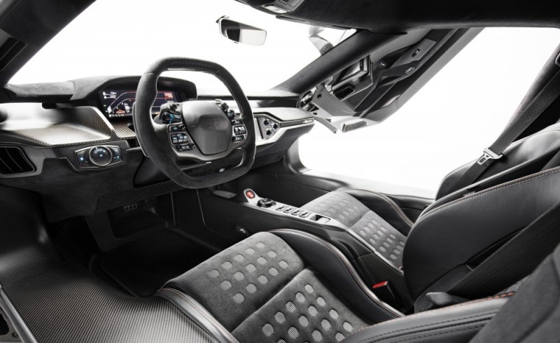 A korábbi Heritage modellváltozatokhoz hasonlóan a Ford GT Heritage Edition utasterében is megtalálható az egyedi sorozatszám-tábla. A vastag küszöböket és a középkonzolt fényezetlen, matt árnyalatú szénszálas burkolat fedi.