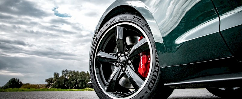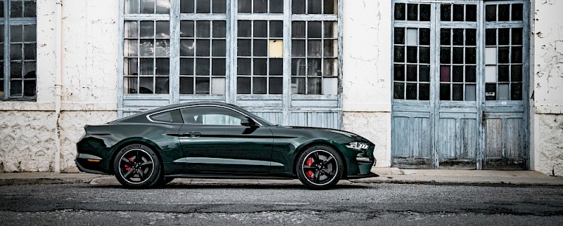 A Shadow Black vagy klasszikus Dark Highland Green fényezésekkel megrendelhető Mustang Bullitt 19 colos, Torq Thrust stílusú keréktárcsákon gördül, amelyek mögött vörösre festett Brembo™ féknyergek láthatók, a kör alakú tanksapkát pedig ugyanolyan logó díszíti, mint a mozifilmben.